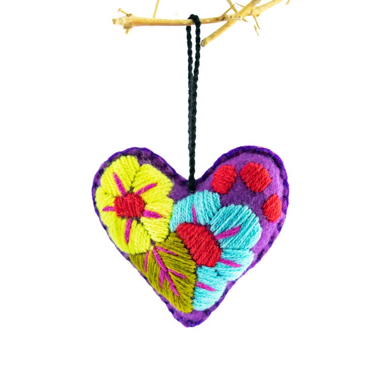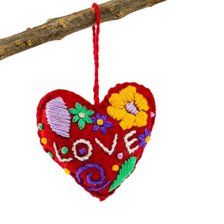 13-Love Heart Embroidered Felted Wool Ornament - Mexico