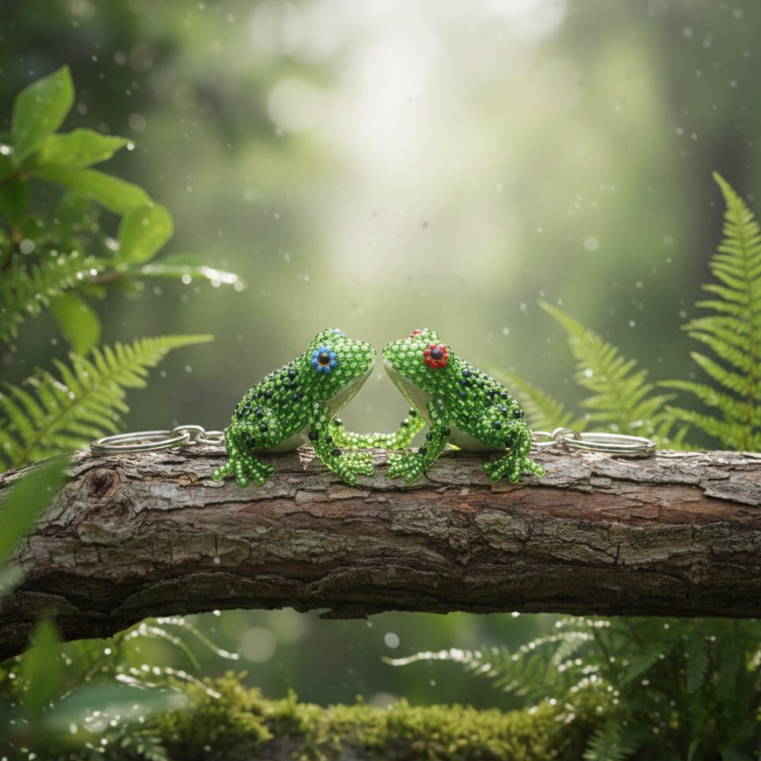 Add a touch of elegance to your keys with our Frog Seed Bead Keychain, expertly handcrafted by skilled women artisans in the highlands of Guatemala. Each keychain is made with meticulous attention to detail, using tiny glass seed beads and filled with recycled plastic bags to give it an eco-friendly edge.