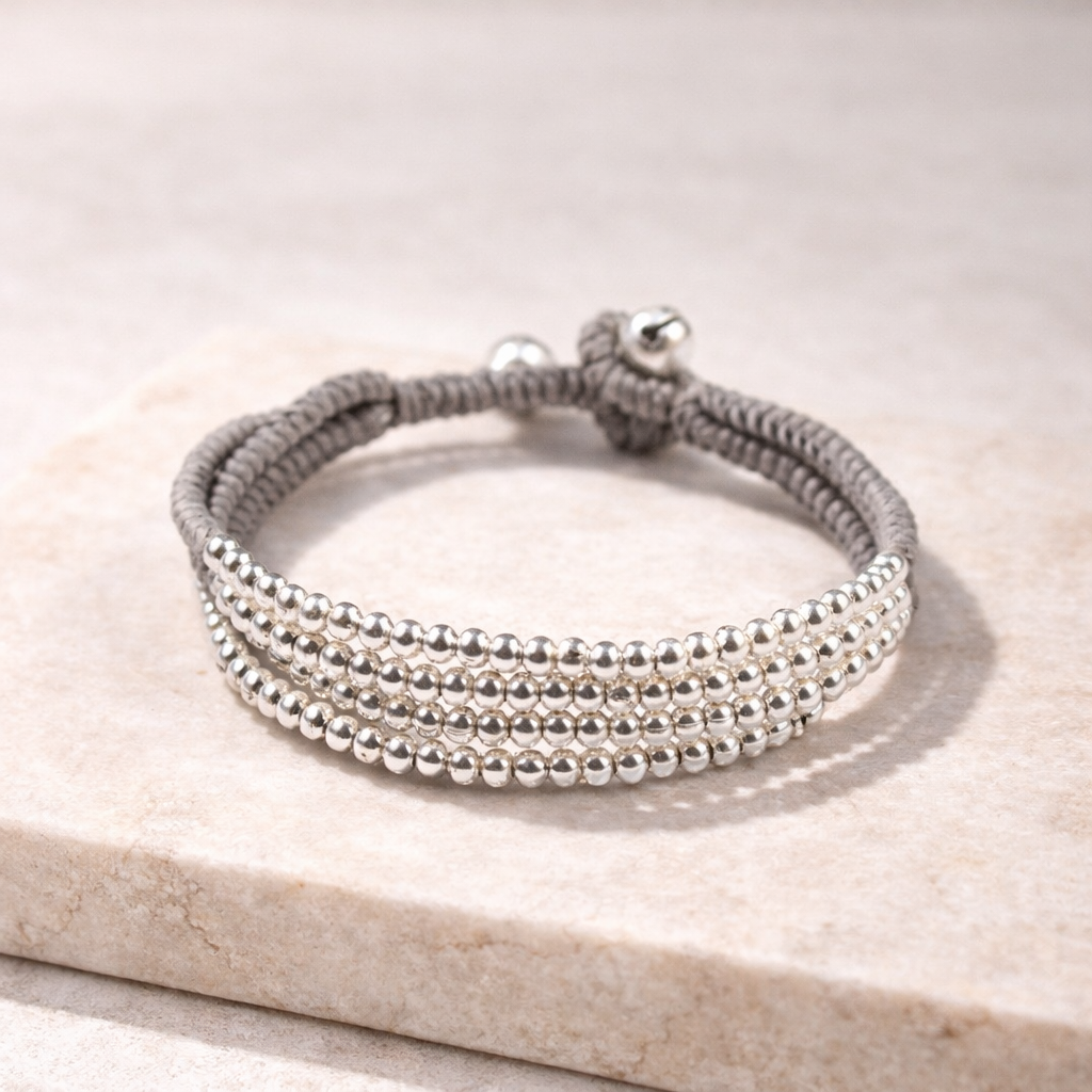 Cherish Brass Metal Bead Adjustable Bracelet - Thailand-Jewelry-Lumily-Silver-Lumily MZ Fair Trade Nena & Co Hiptipico Novica Lucia&