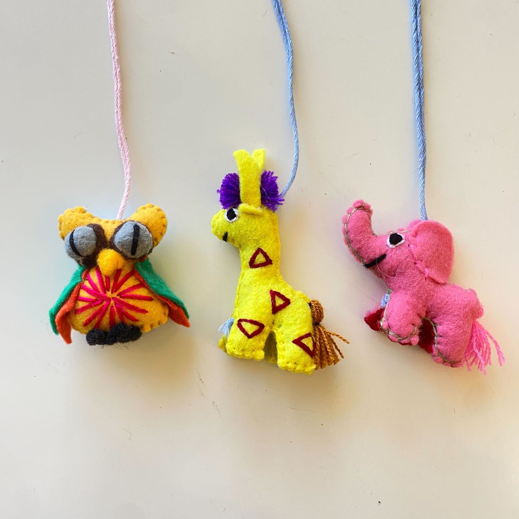 Say hello to your new favorite little creatures 🐘🦓🦒 Handmade with love by Abigail in Mexico, these playful wool animals bring color, joy, and meaning to every space. Whether you hang them on your tree, backpack, or rearview mirror, they’re a fun reminder that handmade matters.
