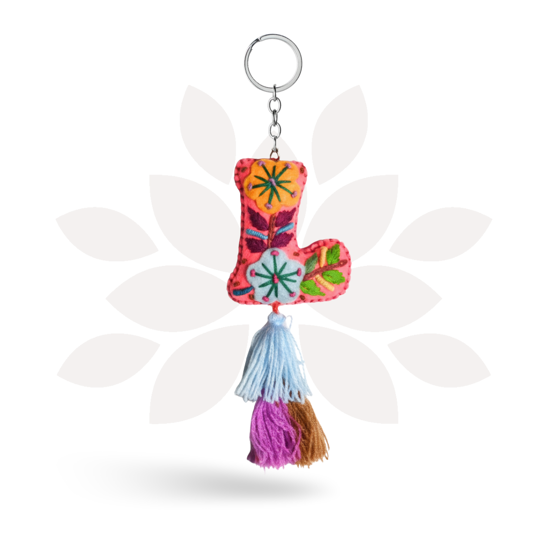 Add a burst of Mexican folk art to your everyday carry with our vibrant hand-embroidered wool felt initial keychains! Lovingly handcrafted in southern Mexico by artisan Raquel and her family, each personalized letter keychain is a true one-of-a-kind masterpiece. No two are ever exactly alike – the colorful floral embroidery, playful tassels, and rich felted wool make every piece uniquely beautiful.